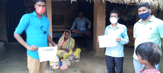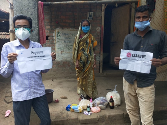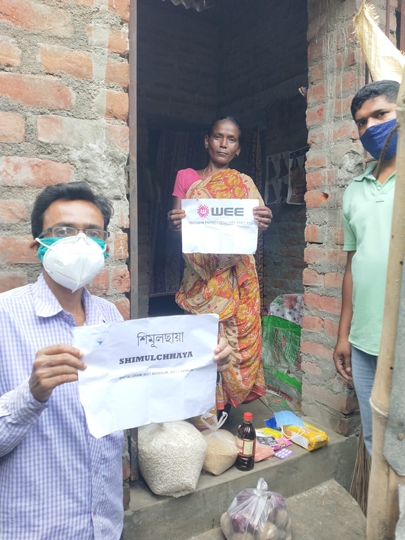 WEE reached interiors of Bengal into a village called Shitalgram, which is 35 Kms away from Rampurhat Hospital. This village has 60 families affected by corona virus. The youth who were born & brought up from this village and migrated to Kolkata and working as doctors, teachers, advocate, reached here and formed a Covid Care group called “Shimulchhya” for distribution of essentials to covid-affected families and helping with various needs related to treatment of patients. Animesh Barick, Binodkrishna Pramanik, Shubh Pramanik and Chayan Mandal are working day & night to help the affected.