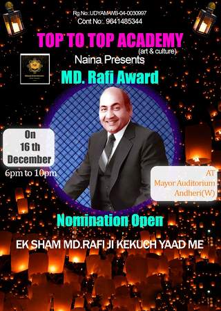 Singer NAINA CHOUDHARY Brain Behind Top To Top Academy Presents Ek Shaam RAFI SAHEB Ki Kuch Yaad Mein To Be Held On 16th Dec. 2024 At Mayor Hall Mumbai.